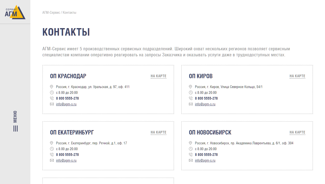Мы тесно сотрудничали с компанией «АГМ-Сервис» на протяжении ведения всего проекта, так как у них было четкое представление о дизайне, реализацией которого мы занимались от начала и до конца.