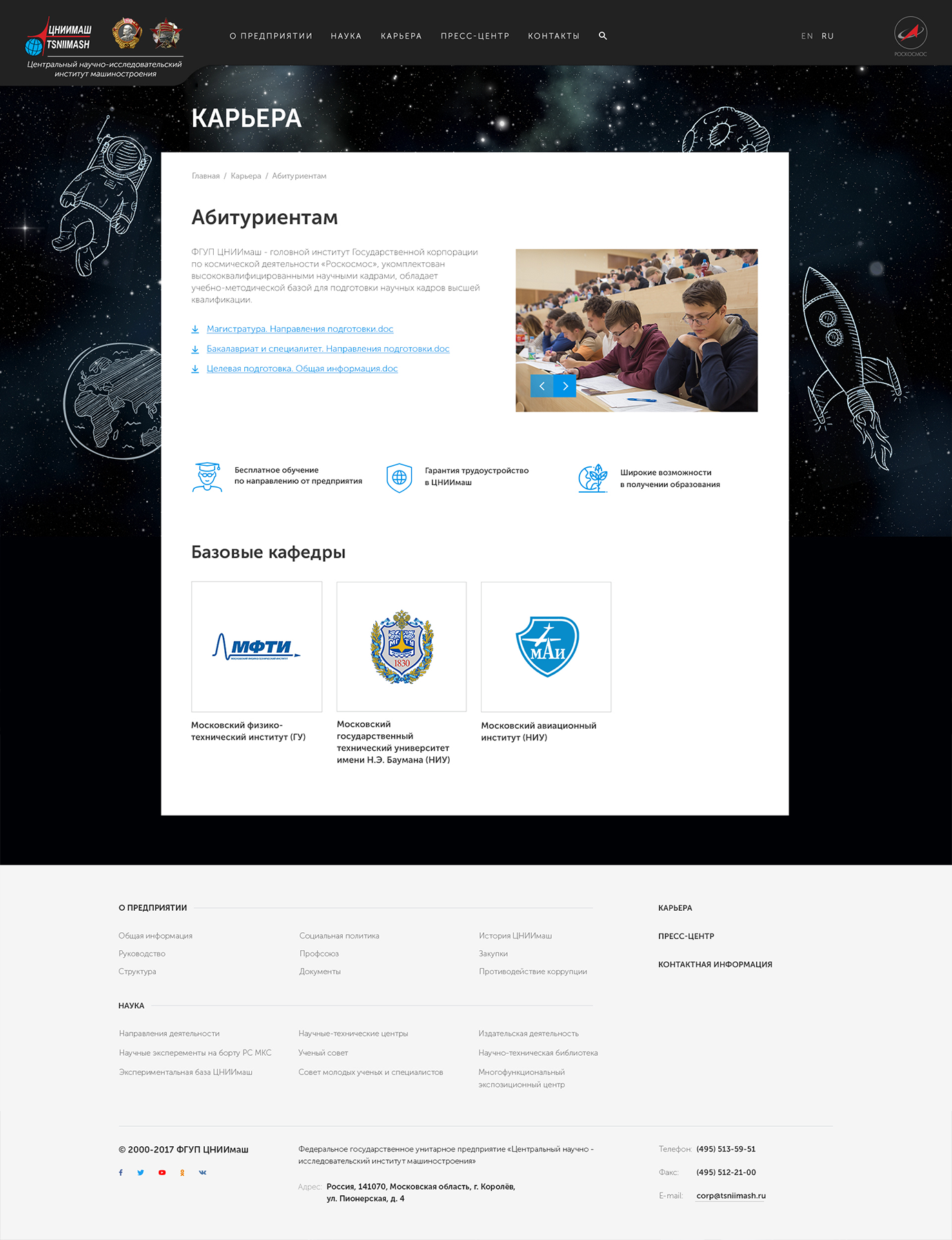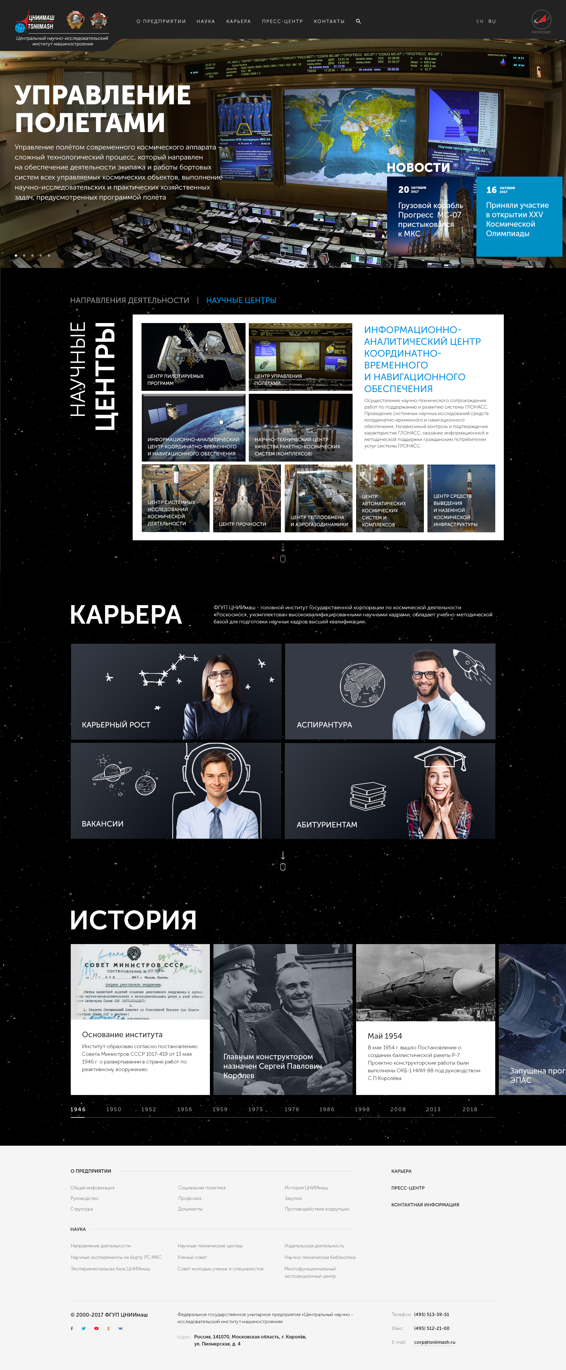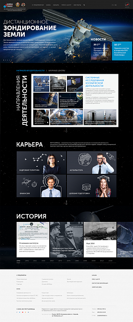 Разработка нового веб-сайта, объединяющего контент с сайтов tsniimash.ru, glonass-iac.ru, knts.tsniimash.ru, mcc.rsa.ru, и адаптированный под различные разрешения экранов и различные устройства пользователей.